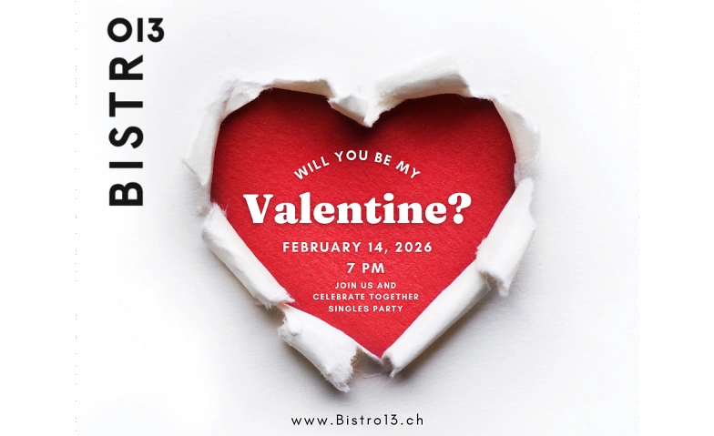 Valentine’s Day is the day of love – and we’re celebrating it in a relaxed, cheerful atmosphere full of heart! Whether you’re looking for new connections, new friendships, or maybe even your great love… Bistro 13 in Bülach invites you to an evening filled with good vibes, interesting people, and a romantic ambiance.