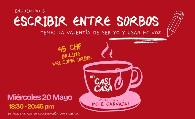 Únete al tercer encuentro creativo del año de “Escribir entre sorbos”, por Mile Carvajal, en colaboración con Casi Casa. Un SPAcio para el alma de escritura, creatividad, conexión, y vulnerabilidad.