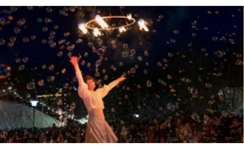 Schillernde Siefenblasen tanzen zwischen wilden Flammen. Die grosse Wintershow von Lisa Bögli und Andreas Schwarzer. Wortlose Poesie erfüllt die dunkle Nacht mit Wärme und funkelndem Licht.