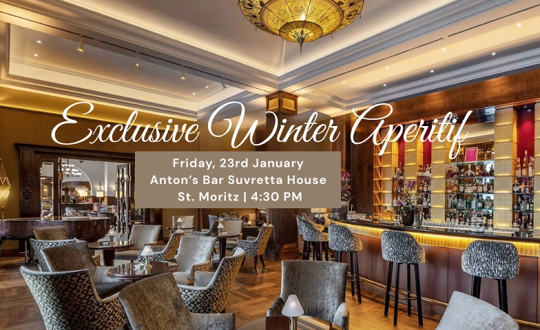 Hosted at the iconic Anton’s Bar at Suvretta House St. Moritz, this elegant evening promises an unforgettable atmosphere set amidst snow-covered peaks, shimmering lights, and the timeless prestige of St. Moritz at its most magical.