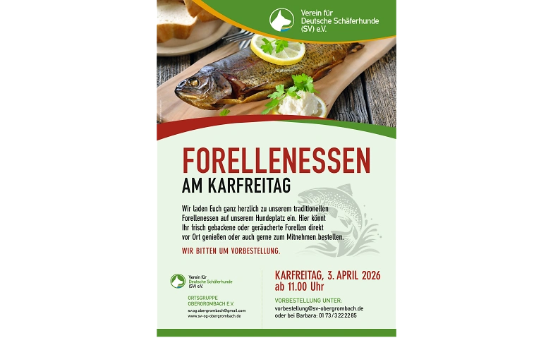 Forellenessen am Karfreitag beim Verein für Dt. Schäferhunde wird organisiert durch: