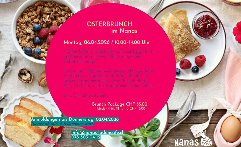 Anmeldungen bis Donnerstag, 02.04.2026 an info@nanas-ladencafe.ch oder via Tel 078 303 04 12