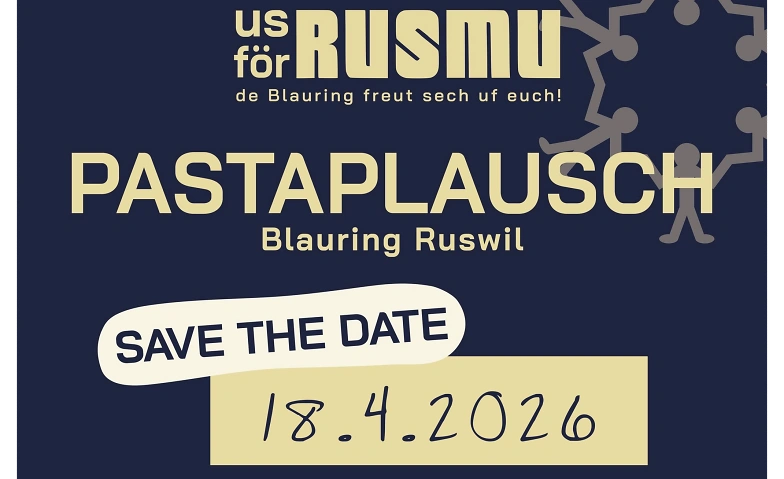 Der Blauring Ruswil ladet euch am 18. April 2026 herzlich zum Pasta Plausch ein. Ab 18:00 Uhr erwartet euch ein abwechslungsreicher Abend mit verschiedenen Pasta-Spezialitäten im All-you-can-eat-Angebot, mit Salat und Dessert. Komm mit deiner Familie und Freunden und geniesse das vielfältige Unterhaltungsprogramm, welches für einen angenehmen und stimmungsvollen Abend sorgt.
