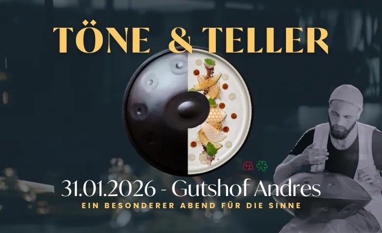 Erlebe ein exklusives 5-Gänge-Menü aus hochwertiger, regionaler Küche im Gutshof Andres, begleitet von erlesenen Weinen vom Weingut Dereser oder einem alkoholfreien Pairing. Zu jedem Gang erklingen eigens darauf abgestimmte Handpan-Melodien des Künstlers Christian Gies, die die Aromen und Stimmungen der Gerichte klanglich unterstreichen. Lass dich von diesem achtsamen Zusammenspiel aller Sinne verzaubern und genieße ein einzigartiges Erlebnis.