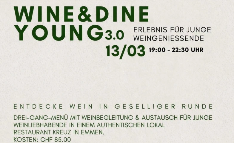 Wine & Dine Young 3.0 Restaurant Kreuz, Seetalstrasse 90, 6032 Emmen Tickets