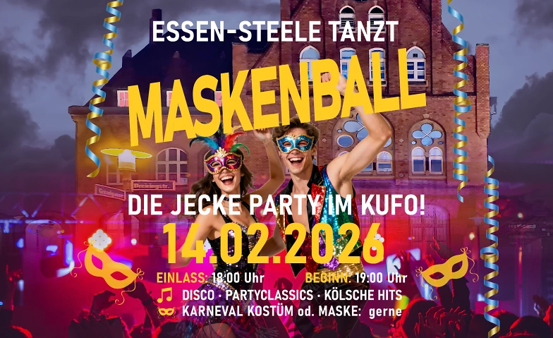 Am Karnevalssamstag, steigt in Essen-Steele die größte und bunteste Karnevalparty der Session. MASKENBALL, die jecke Party im KUFO – kein steifer Ball, sondern echte Karnevalsstimmung mit Disco-Feeling!