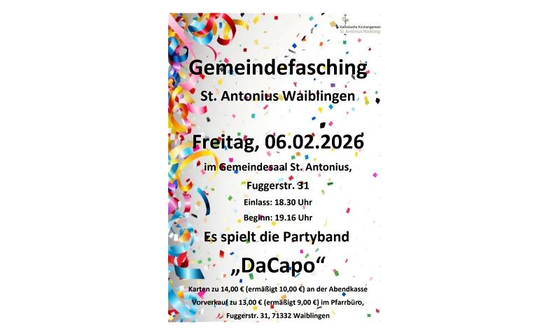 Kirchengemeinde St. Antonius, Fuggerstraße 1, Waiblingen, DEKategorie: Fasnacht / Fasching / Karneval / Party