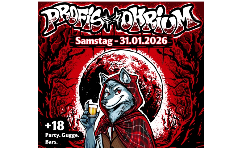 Das erste Profis-Ohrium war ein voller Erfolg! Nun geht es am 31. Januar im Gemeindesaal Baar erneut richtig ab. Geiler Sound, Guggen-Power, Bars, Food und vieles mehr! Unter dem Motto "Die Werwölfe von Düsterwald" verwandeln wir den Gemeindesaal in eine "düstere und doch zauberhafte" Fabelwelt. Die 9 Guggen sorgen zusammen mit den beiden DJ's "Mars-L & Tom-Style" für den richtigen Sound & Stimmung.