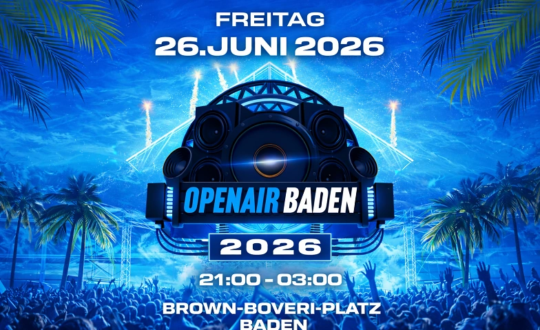Freu dich auf das jährliche Highlight mitten in der Stadt Baden: das OpenAir Baden Am 26. Juni 2026 feiern wir gemeinsam von 21:00 bis 03:00 Uhr und tanzen zu den besten Hits der 90er bis 2010er.