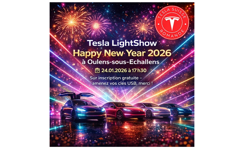Rejoignez-nous pour un événement exceptionnel, un tournage exclusif du LightShow Happy New Year 2026 avec Tesla Suisse Romande.