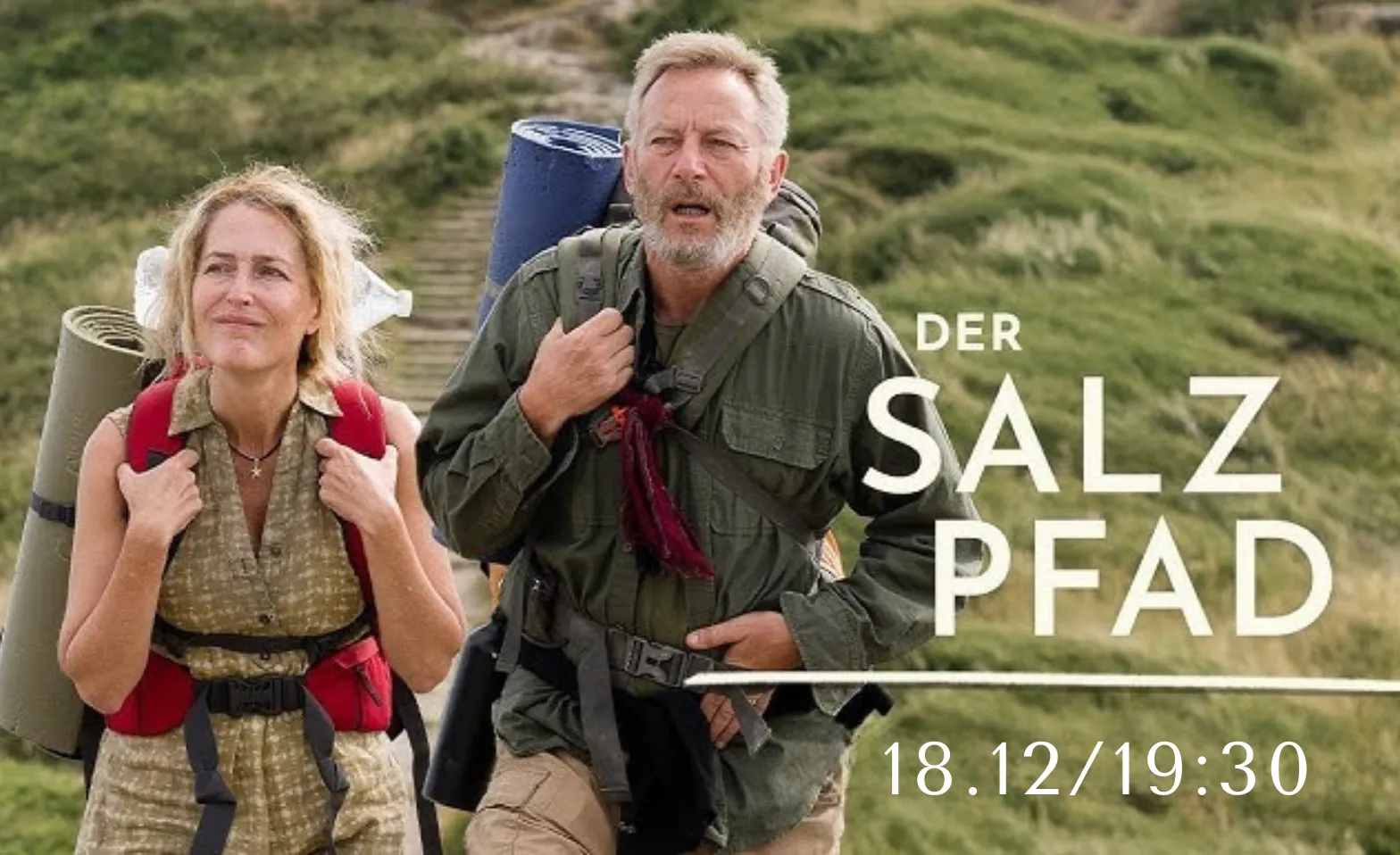 Unser Programmkino zeigt am Donnerstag, dem 18.12.2025,  das Drama "Der Salzpfad". Erzählt wird die Geschichte zweier Eheleute, die ihr Haus und Ersparnisse verlieren und beschließen einen über 1.000 Kilometer langen Wanderweg entlang der englischen Atlantikküste zu wandern…….