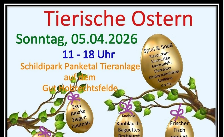 Tierische Ostern Schildipark Panketal Tiergehege auf dem Gut Hobrechtsfelde, Hobrechtsfelder Dorfstraße 45, 16341 Panketal Tickets