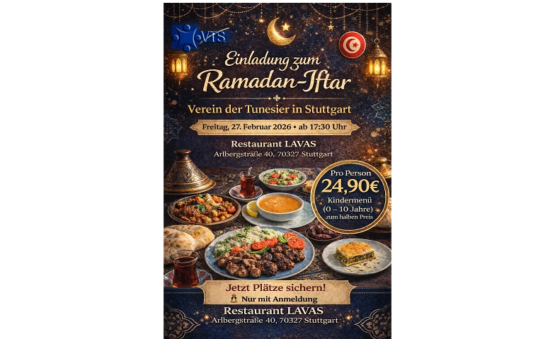 ⏰ Uhrzeit: Bitte kommt mindestens 30 Minuten vor Sonnenuntergang (ca. 17:30 Uhr), damit wir pünktlich gemeinsam das Fasten brechen können.