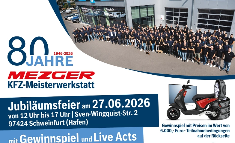 80 Jahre Mezger KFZ-Meisterwerkstatt - Jubiläumsfeier KFZ Werkstatt, Sven-Wingquist-Straße 2, 97424 Schweinfurt Tickets