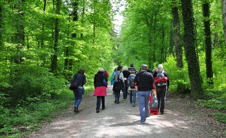 Wir Wandern am zusammen auf dem Grenzweg durch den Höragenwald in Bülach.