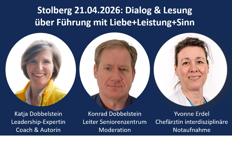 In einem persönlichen Dialog teilen Katja Dobbelstein (Leadership-Expertin, Coach, Beraterin & Autorin), Konrad Dobbelstein (Leiter eines Seniorenzentrums) und Yvonne Erdel (Chefärztin einer interdisziplinären Notaufnahme) ihre Erfahrungen sowie Einsichten über Führung und beantworten eure Fragen – alle drei geboren in Stolberg und aufgewachsen in Gressenich.