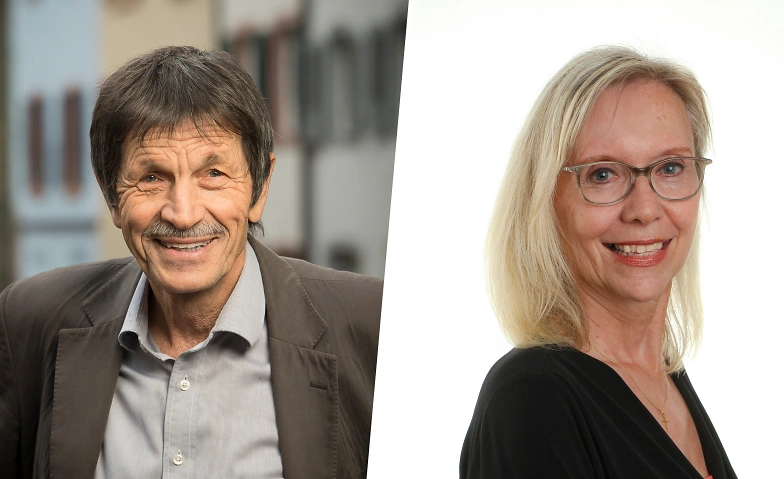 Soziologe Ueli Mäder führt die Gespräche und Peter Schmid begleitet musikalisch.