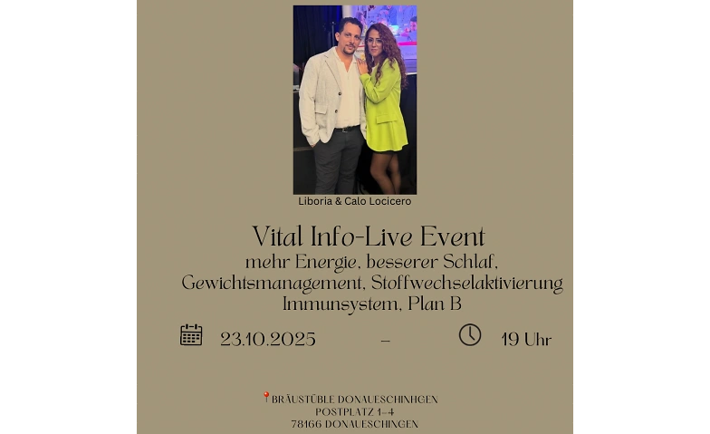 Vital Info - Live Event Fürstenberg Bräustüble, Postplatz 1-4, 78166 Donaueschingen Tickets