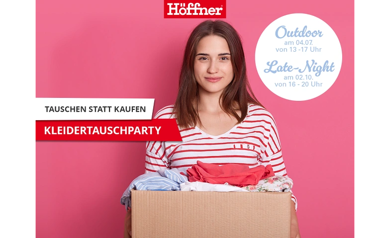 2. + 3. Kleidertauschparty bei Möbel Höffner in Münster | Samstag, 04.07.2026, 13:00 Uhr | Höffner Möbelgesellschaft GmbH & Co. KG, 48159 Münster, DE | Infos | |