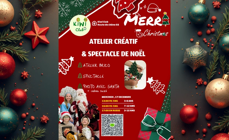 Atelier et spectacle de Noël (FR/EN) 13:00-14:30 3-6 ans Tickets Atelier et spectacle de Noël (FR/EN) 13:00-14:30 3-6 ans Mittwoch, 17.12.2025, 13:00 Uhr KIWI Club, 1208 Genève, CH Tickets