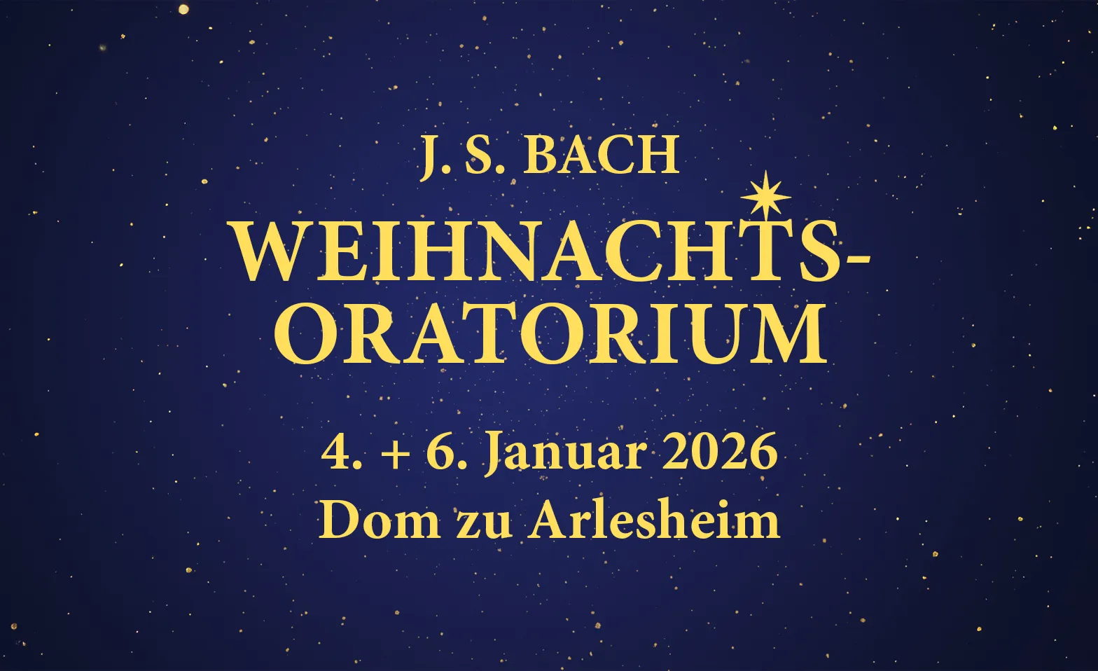 J. S. Bach: Weihnachts-Oratorium – Kantaten IV bis VI Tickets J. S. Bach: Weihnachts-Oratorium – Kantaten IV bis VI Dienstag, 06.01.2026, 19:30 Uhr Dom zu Arlesheim, 4144 Arlesheim, CH Tickets