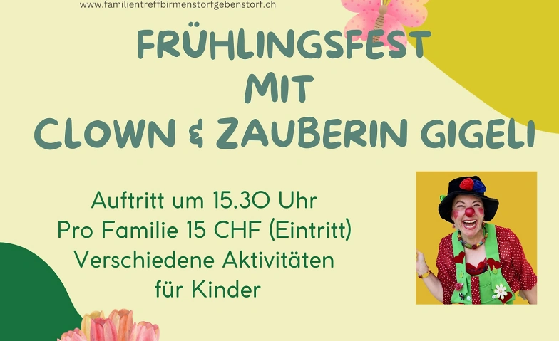 Frühlingsfest mit Clown und Zauberin Gigeli Familientreff Birmenstorf, Chileweg 2, 5413 5413 Birmenstorf AG Tickets