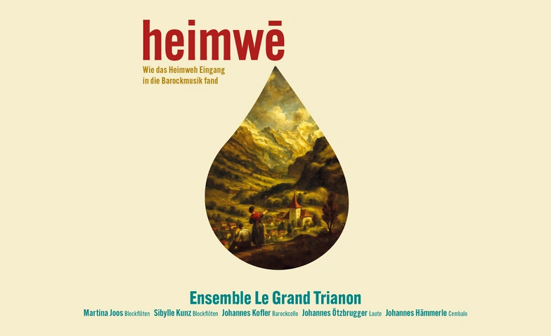 heimwē - Eine tiefe Sehnsucht nach vertrauter irdischer oder himmlischer Geborgenheit durchweht das Gefühl des Heimwehs. Jenes stille Leiden, einst Sinnbild schweizerischer Seele, bewegte schon im 16. Jahrhundert Ärzte, Geistliche und Philosophen. Und wie viele andere menschliche Gemütsregungen fand die zarte Melancholie bald auch in der Musik ihren Ausdruck. Im Konzert spürt das Ensemble LE GRAND TRIANON dem Heimweh in Werken von Couperin, Draghi, Castello u. a. nach, während die Neukomposition von Andreas Gabriel das Thema der sehnsüchtigen Erinnerung in aktuellem Kontext erscheinen lässt.