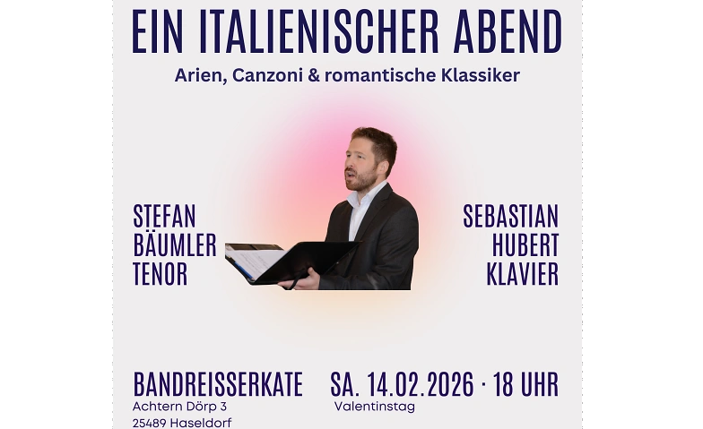 Am 14. Februar 2026 um 18 Uhr lädt die Historische Bandreißerkate zu einem besonderen musikalischen Highlight ein: Tenor Stefan Bäumler und Pianist Sebastian Hubert präsentieren ihr Programm „Ein italienischer Abend“ – ein stimmungsvoller, charmant moderierter Konzertabend voller mediterraner Lebensfreude, Emotion und musikalischer Eleganz.