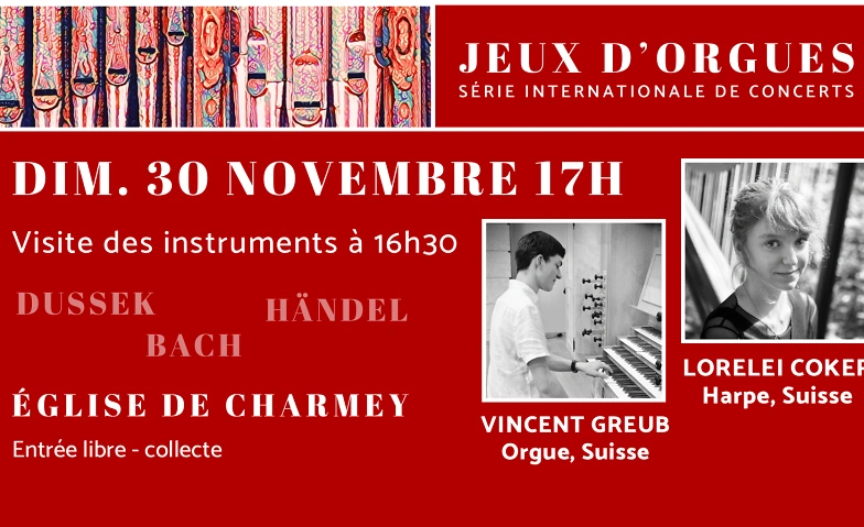 Deux jeunes musiciens suisses Vincent Greub et Lorelei Coker vous proposent un beau programme : venez vous régaler de la rencontre rare entre la harpe et l’orgue de Charmey ! ❤️‍🔥