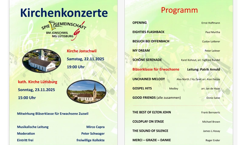 Kirchenkonzert der Spielgemeinschaft Jonschwil-Lütisburg wird organisiert durch: