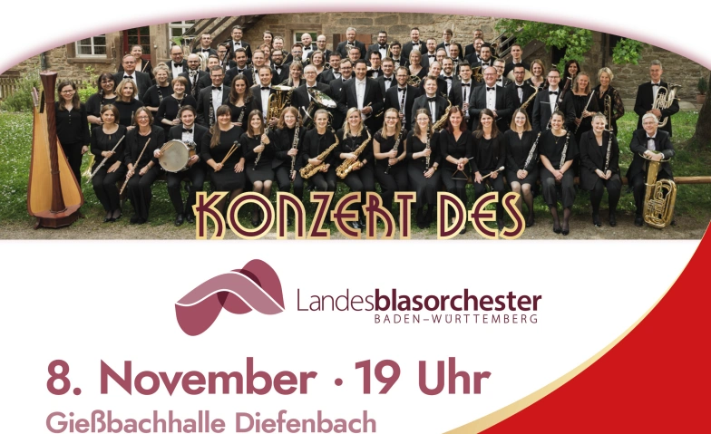 Ein musikalisches Highlight erwartet alle Blasmusikfreunde: Das Landesblasorchester Baden-Württemberg (LBO) gastiert am Samstag, 8. November 2025 in der Gießbachhalle Diefenbach. Beginn ist um 19 Uhr – zuvor findet ab 17 Uhr ein besonderes Lehrkonzert statt.