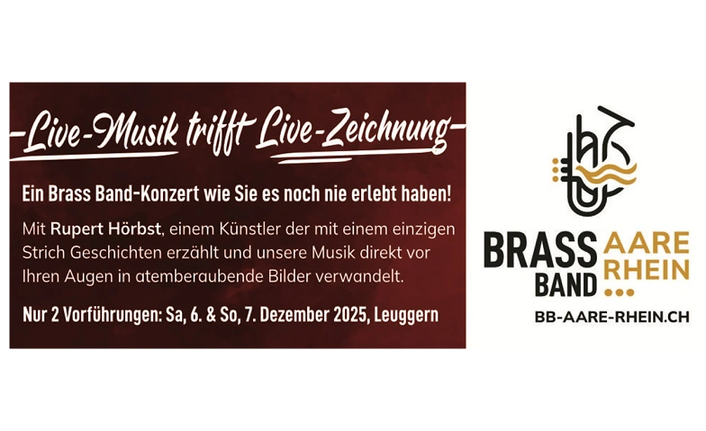 Unterhaltungskonzert "Klangfarben" der Brass Band Aare-Rhein Tickets Unterhaltungskonzert "Klangfarben" der Brass Band Aare-Rhein Sonntag, 07.12.2025, 16:00 Uhr Mehrzweckhalle, Parkplätze vor Ort, 5316 Leuggern, CH Tickets