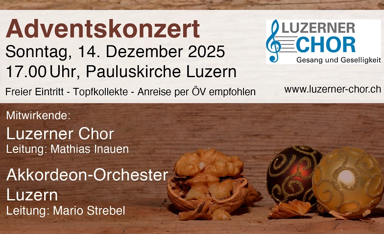 Adventskonzert  Luzerner  Chor und Akkordeon-Orchester Luzer Pauluskirche, Moosmattstrasse 2, 6005 Luzern Tickets