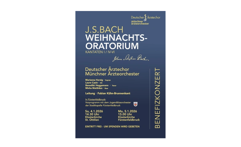In der ersten Januarwoche 2026 führt der Deutsche Ärztechor mit dem Münchner Ärzteorchester und vier jungen Solistinnen und Solisten unter der Leitung von Fabian Kühn-Brunnenkant das Weihnachtsoratorium von J.S. Bach auf (Kantate I und die Kantaten IV-VI).