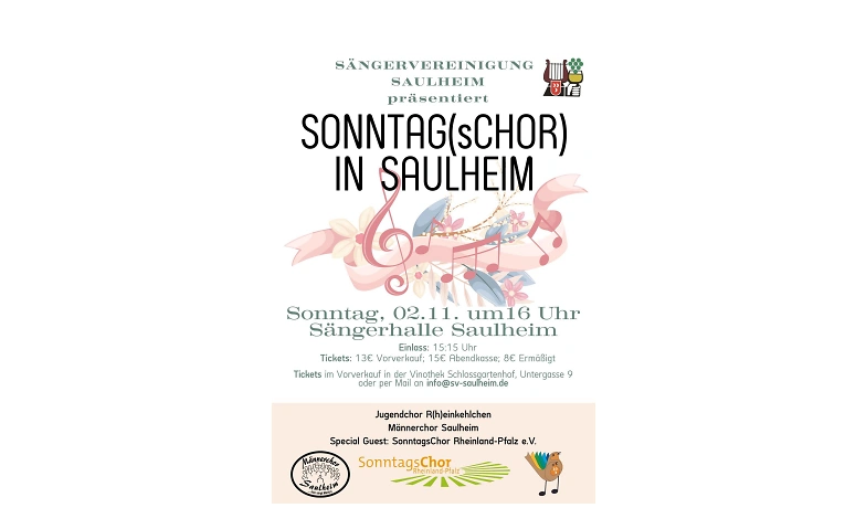 SONNTAG(sCHOR) IN SAULHEIM Sängerhalle Saulheim, Bahnhofstraße 22, 55291 Saulheim Tickets