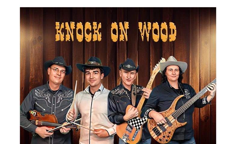 KNOCK ON WOOD...das sind vier gestandene Musiker/Innen, die auf jahrzehntelange Band-/Live- und Studio-Erfahrung u.a. auch im Genre „Country“ zurückblicken können. Sie bedienen an einem Abend insgesamt 8 verschiedene Instrumente (Schlagzeug, E-Bass, E-Gitarre, Mandoline, Geige, Akustik-Gitarre, Klavier, Banjo) und zeichnen sich durch ihren filigranen Satzgesang aus. KNOCK ON WOOD hat sich das Ziel gesetzt, Linedance-Begeisterte und Liebhaber der Countrymusik mit ihrer Songauswahl sowie Bühnenpräsentation im Western-Style-Outfit inklusive authentischer Bühnen-Dekoration zu unterhalten.