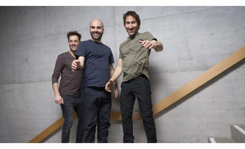 Seine Begleiter Manu Hagmann am Kontrabass und Arthur Alard am Schlagzeug, sind zwei herausragende Musiker, deren Beweglichkeit und Musikalität es dem Trio ermöglichen, mit Freude auf einem Drahtseil zu tanzen und eine unendliche Palette an Nuancen auszuschöpfen.