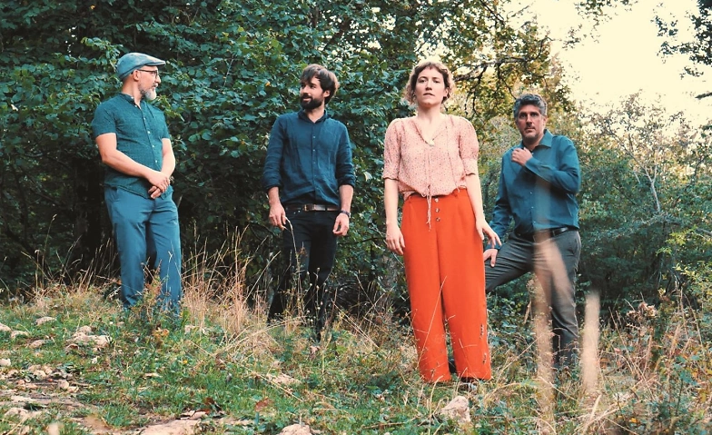 Lara Wedekind webt mit ihrer Stimme mystische Erzählungen in das virtuose und klangvolle Spiel der Musiker Cyprien Rochat (guitar), Vincent Millioud (violine) und Valentin von Fischer (bass).