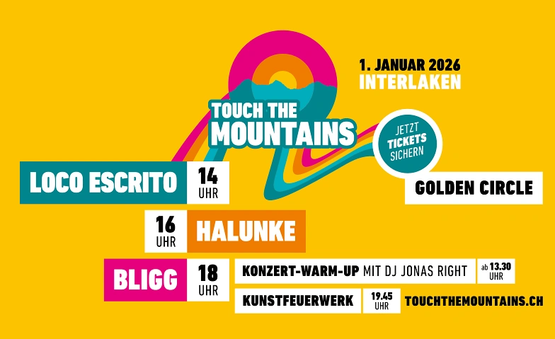 Begrüsse am 1. Januar mit uns das neue Jahr am TOUCH THE MOUNTAINS in Interlaken! Tauche ein in einen Tag voller Musik, Freude und Gänsehaut-Momente, eingerahmt von der imposanten Bergwelt. Erlebe zum 21. Mal kostenlose Live-Konzerte grossartiger Schweizer Künstler und eine magische Atmosphäre unter freiem Himmel. Entlang des Höhewegs erwarten dich verschiedene Verpflegungsstände mit einer grossen Auswahl an köstlichen Speisen und Getränken.