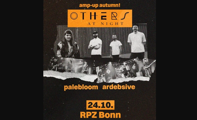 Mit dabei sind Others At Night aus Bonn, die für ehrlichen Alternative Rock mit dynamischen Songs, klarer Stimme und energiegeladenem Sound stehen. Aus Köln kommen palebloom, eine female-fronted Post-Hardcore Band, die Pop-Punk-Energie mit emotionaler Tiefe und intensiver Live-Performance verbindet. Komplettiert wird das Line-up von Ardebsive, die mit ihrem druckvollen Rock-Sound und eigenem Stil für zusätzliche Energie und Abwechslung sorgen.