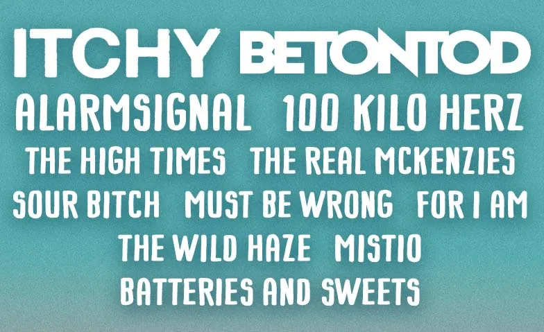 Line-up Samstag: ITCHY | Alarmsignal | 100 Kilo Herz | The High Times | Must Be Wrong | For I Am | Mistio