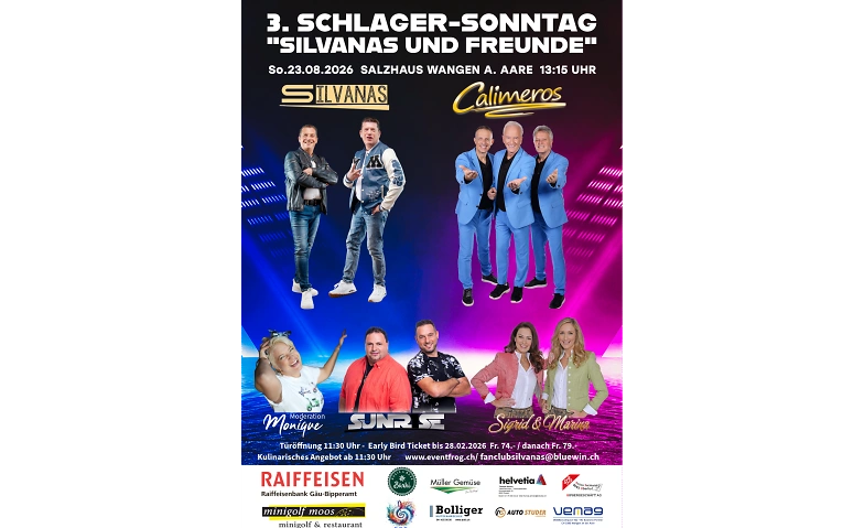 Freuen Sie sich auf ein unvergessliches Musikfest voller Emotionen, mitreißender Melodien und bester Unterhaltung. Im wunderschönen Ambiente des Salzhauses in Wangen an der Aare erwarten Sie einige der beliebtesten Stars der Schlagerwelt: