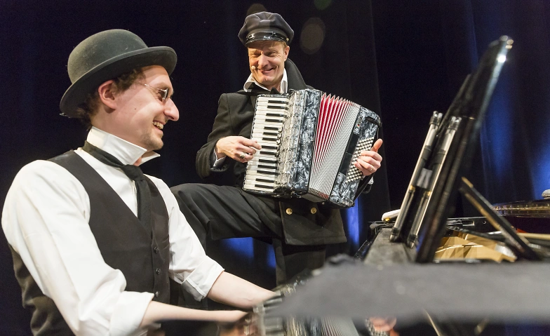 Ein Kanonenkugelflug durch ein Leben mit Licht und Schatten, mit bekannten Songs wie „Komm auf die Schaukel, Luise“, „Hoppla, jetzt komm ich“ oder „La Paloma“. Aber Dirk Wittun und Wolfgang Völkl fischen auch weniger bekannte musikalische Perlen vom Albersschen Meeresgrund.