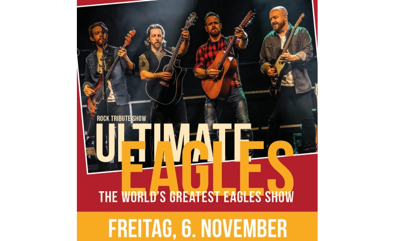 ROCK TRIBUTE SHOW | Seit Jahren begeistert The Ultimate Eagles weltweit Fans mit einer detailgetreuen Hommage an die Kultband Eagles: Sie liefern nicht einfach ein Tribute-Konzert – sie katapultieren ihr Publikum zurück in die kalifornischen Siebziger, mit makellosen Mehrstimm-Harmonien, ikonischen Gitarrensoli und einer Performance, die wirkt, als stünde das Original auf der Bühne. Für Liebhaber von «Hotel California», «Take It Easy» oder «Life in the Fast Lane» wird hier Musikgeschichte lebendig.