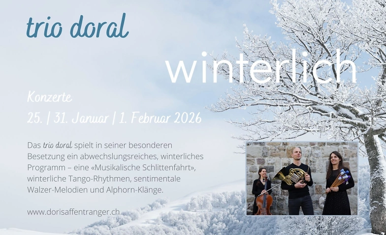 Credits: Herzliche Einladung zu den Konzerten «winterlich» des trio doral (Foto: trio doral-Flyer/© trio doral 2026)