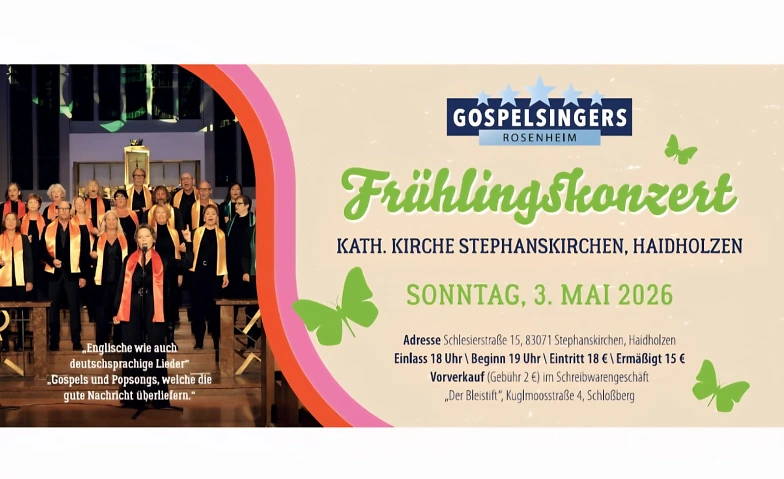 Frühlingskonzert der Gospelsingers Rosenheim Kath. Kirche Haidholzen Maria Königin des Friedens, Schlesierstraße 15, 83071 Stephanskirchen Tickets