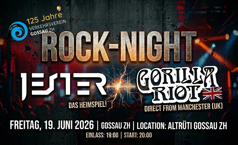 Zwei Bands, eine Mission: Rock’n’Roll pur. Komm vorbei, unterstütze unsere lokalen Helden und lassen dich vom internationalen Flair aus Manchester mitreissen. Der Verkehrsverein Gossau ZH freut sich auf eine unvergessliche Rock-Nacht mit dir!