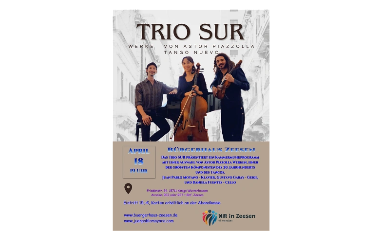 TRIO SUR Bürgerhaus Zeesen, Friedenstraße 54, 15711 Königs Wusterhausen Tickets