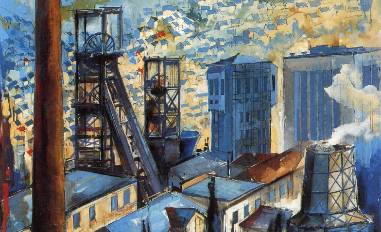Credits: Walter Bernstein, Grube Camphausen, um 1970, Mischtechnik auf Papier, Sammlung Delf Slotta, Saarbrücken, Foto: Delf Slotta