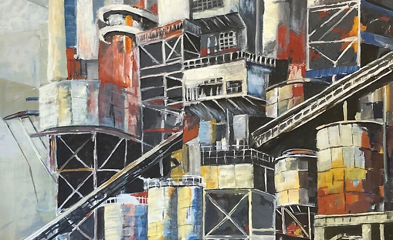 Nicht zufällig haben die beiden „spätberufenen“ Künstler bei einer Schau in Riegelsberg zueinandergefunden, denn sie eint das Thema Industriekultur – stillgelegte Gruben und Werke der eisenverarbeitenden Industrie. Für Ursula Bauer sind ihre Werke „Heimatbilder“, entstanden aus Herkunft und persönlicher Erinnerung. Aufgewachsen in einer Bergmannsfamilie, hat sie „die Industrie in ihrer ursprünglichen Form noch miterlebt“. Ihr Schulweg führte an der Neunkircher Hütte vorbei, „rauchend, lärmend, im Winter feuerspeiend und beängstigend“. Auch von ihrer ersten Arbeitsstelle in Saarbrücken-Burbach blickte sie auf die dortige Hütte. Diese Eindrücke prägen bis heute ihr Verständnis von Heimat und Identität.